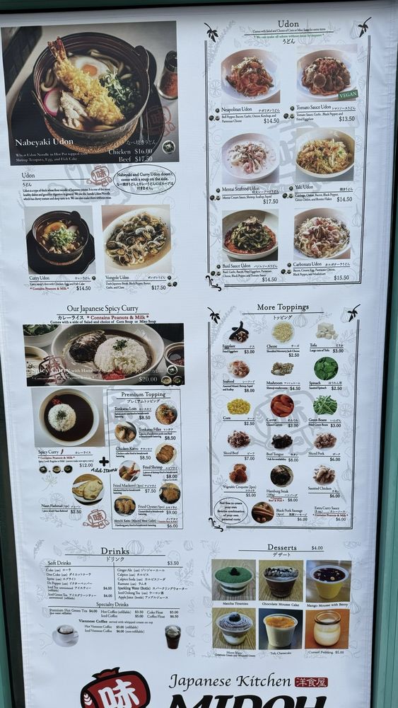 Midoh Rowland Heights is a Japanese restaurant located in Rowland Heights, CA. The menu offers a variety of options such as Hamburg curry, Tonkatsu, Basil Udon, Seafood Mentai Udon, and Chicken Katsu. Customers have praised the flavorful dishes, with highlights including juicy and tender meat, crispy crusts, and creamy sauces. The restaurant provides a cozy ambiance with both indoor and outdoor seating options. Customers appreciate the friendly service and fast delivery of food. With a focus on comfort Japanese cuisine, Midoh Rowland Heights is a go-to spot for those looking for comforting and tasty meals in the area.